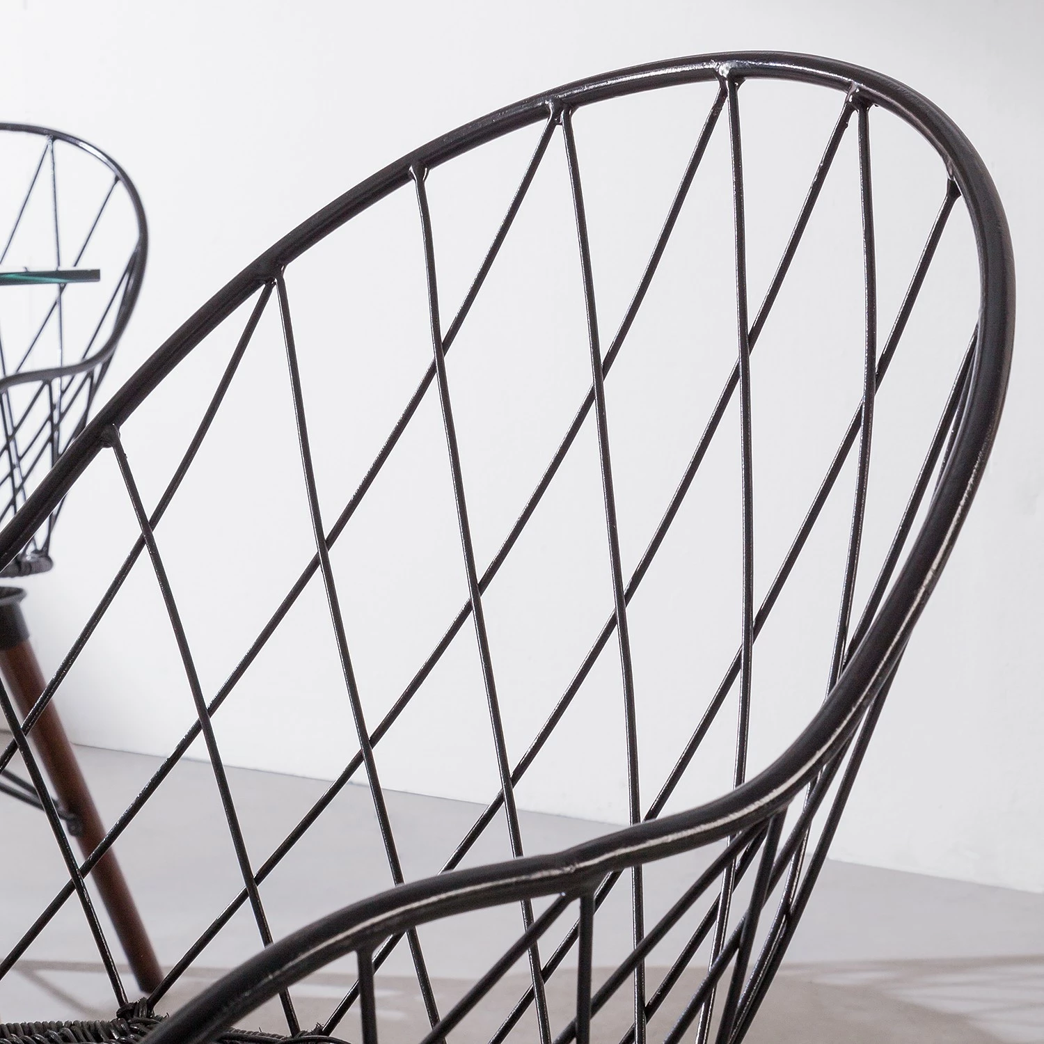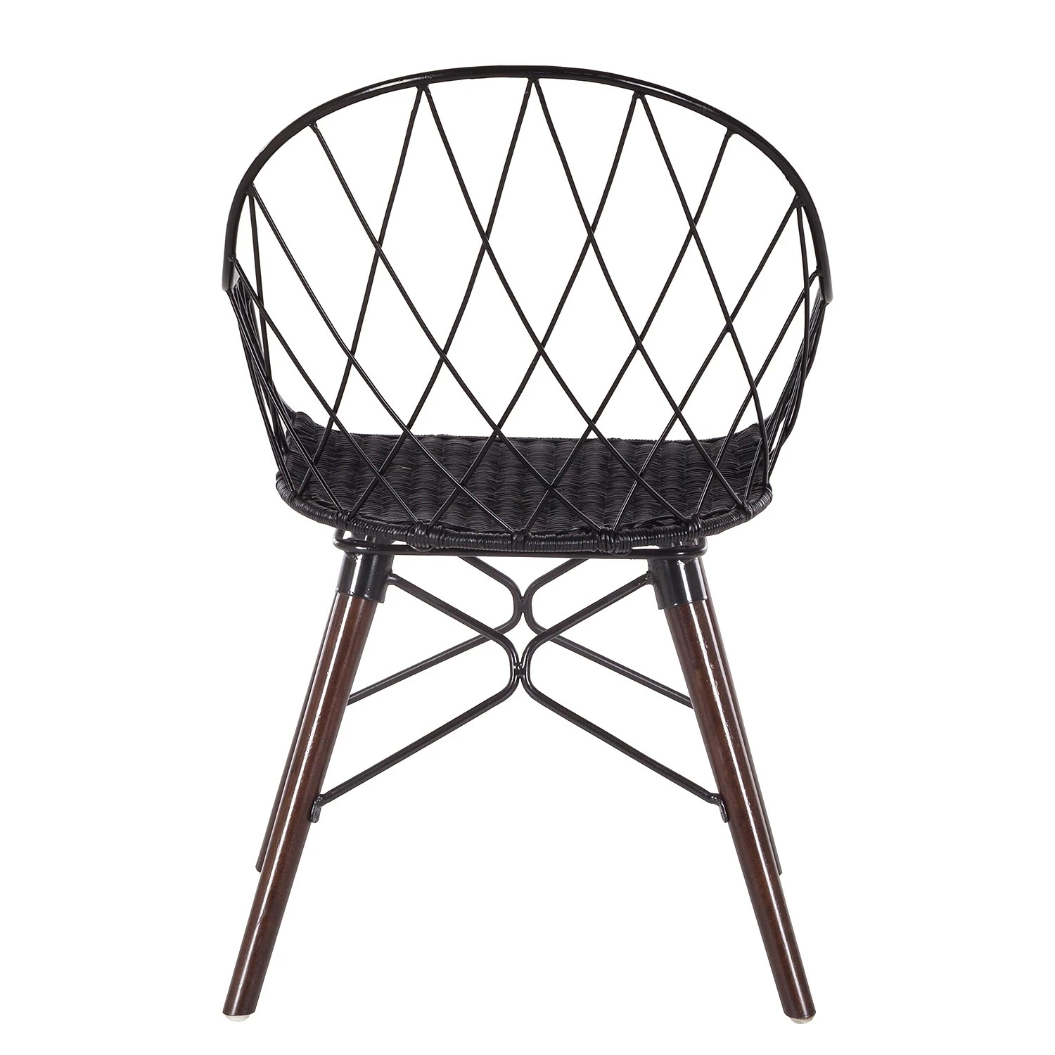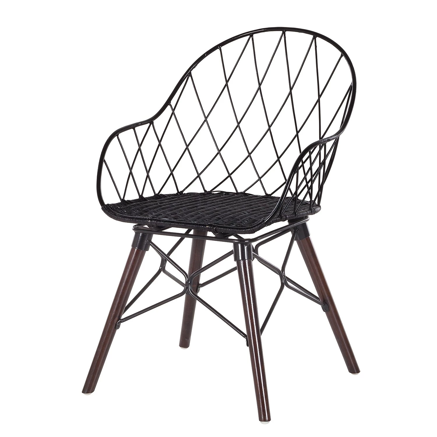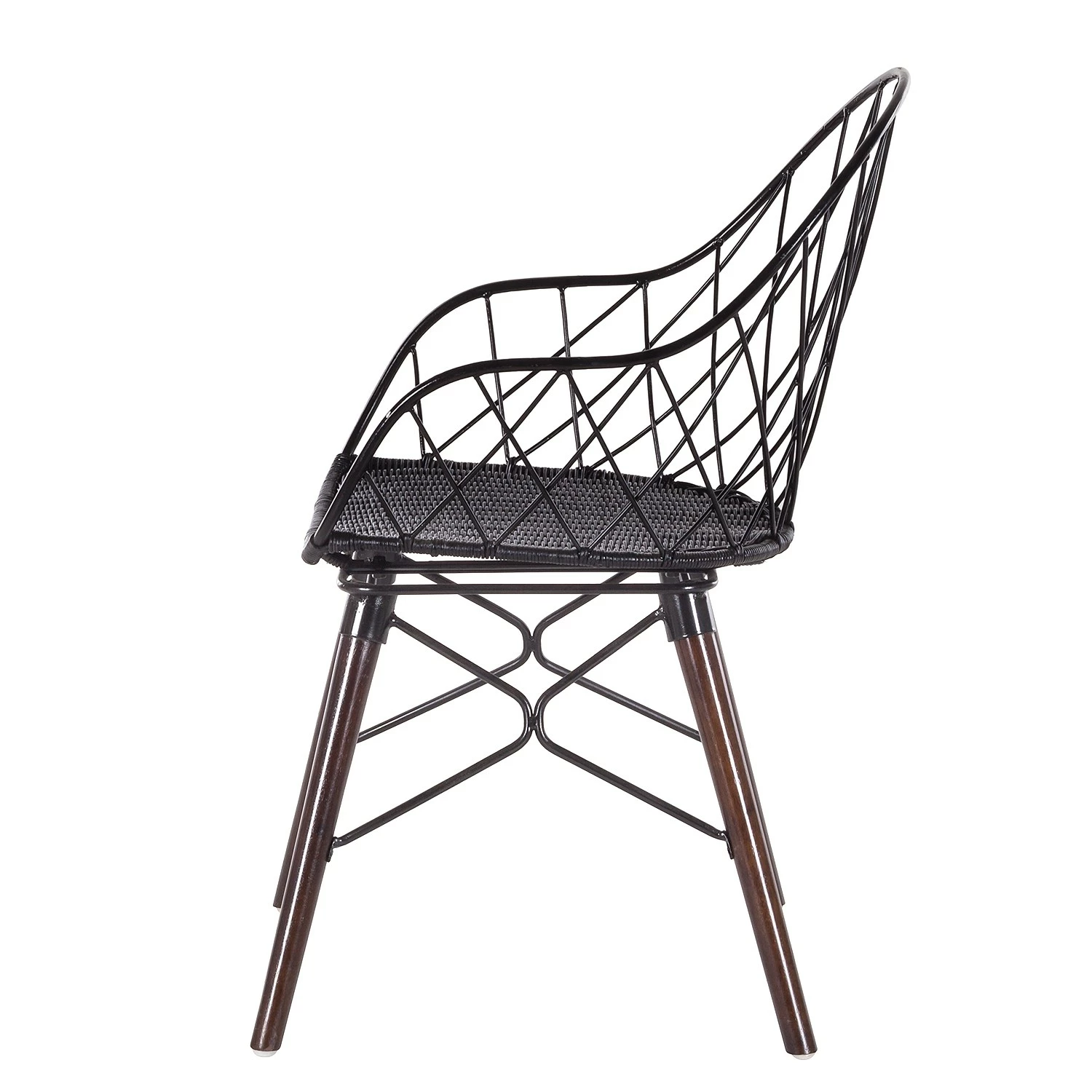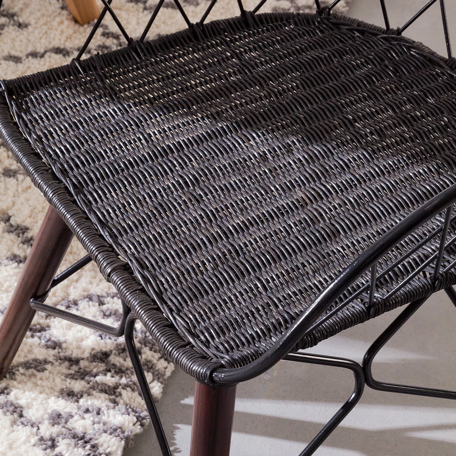 - Coque et structure du siège : noir et assise : rotin noir et pieds : brun foncé