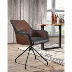 MĂžrteens Chaises Livaras IV – Imitation cuir / ChĂȘne massif – Marron vintage – Lot de 2