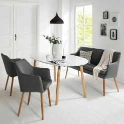 Mørteens Chaise à accoudoirs Buggio – Tissu / Hévéa massif – Tissu Cors: Gris foncé – 1 chaise